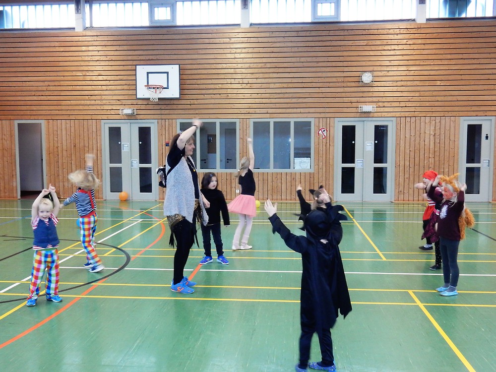 Es ging wieder hoch her beim Faschingsturnen mit Sabine. Mit lauter Musik und vielen bunten Luftballons rockten die Kinder die Turnhalle.