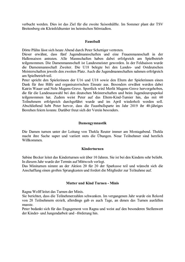 14.02.2020 - Jahreshauptversammlung 2020 TSV Breitenberg